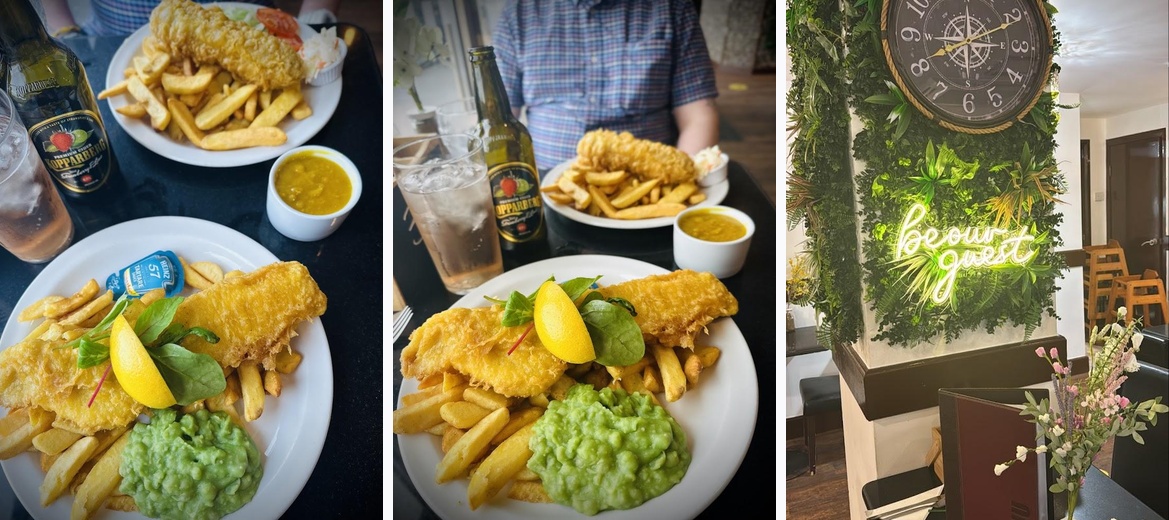 Lovely staff and food generous portions. Eight of us dining after a family day out. They pushed two tables together. The tartare sauce was really nice and the fish was fresh and cooked well. Too many chips for me but I gave the extras to the children. Will revisit
